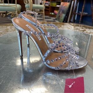 Aquazurra Tequila crystal embellished metallic heels. About 2 pounds. 3229-779