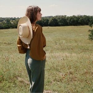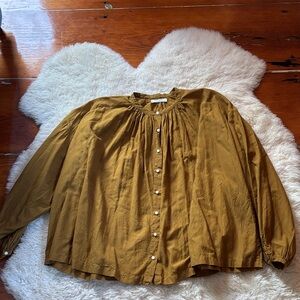 Absolutely gorgeous color, Jane blouse and a cotton blend size large. One small flaw the seam has a bit of fraying on the backside of the neck an easy repair. Sold as is.