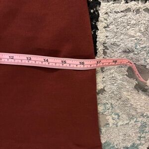 Chic dress with a sleek black bodice. Burgundy sleeves and skirt. Perfect for a refined look.