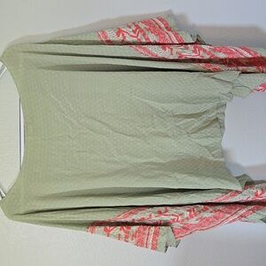 One World Sage Green Embroidered Caftan Cover Up One Size