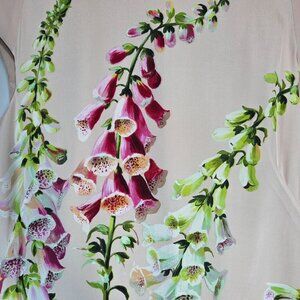 Beautiful pastel pink shift dress with large fox glove floral graphic print on front! Perfect for date night, weddings, garden parties, etc.