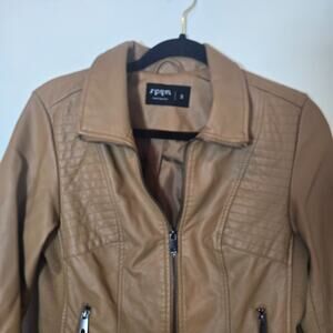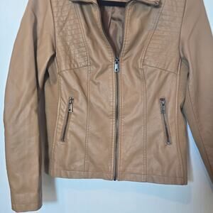 SPYM Faux Leather Light Brown Jacket Size M Full Zip Zipper Pockets Stretch
