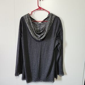 Brand new with tags! This Made for Life womens hooded sweater in size XL features a soft gray knit fabric with stylish patterned contrast animal print (zebra like) accents on the neckline, hood, and cuffs. Lightweight and comfortable, perfect for layering, lounging, or casual everyday wear.