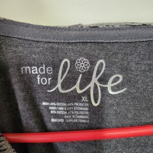 Made for Life hoodie NWT, womens XL pullover sweater, gray hooded top, lightweight knit, contrast trim hoodie, comfy active top, athleisure sweater