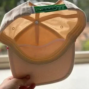 Cute Concho ATX cactus rope hat in beige with pink rope detail. Adjustable green snapback, canvas material, clean and in excellent condition. Western + Austin + cactus aesthetic.