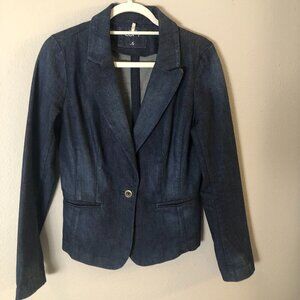 ANN TAYLOR LOFT Blue Denim Button Front Blazer Jacket