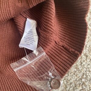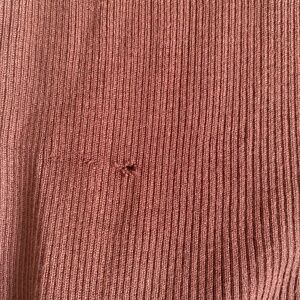 Dress has a collar and button. There is a hole located at the lower right of dress as shown in picture 3. Brown threading is visible along dress. Dress has two clear straps in the inside. Dress has a few snags. Pictures are as shown.