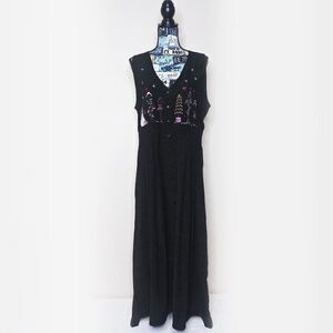 CHRISTOPHER & BANKS Faux Suede Christmas Embroidered Maxi Dress Pockets Sz L VTG