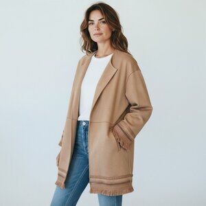 Tags: women’s pink jacket, blush fringe jacket, boho chic outerwear, lightweight layering jacket, fringe trim coat, open front jacket, casual chic cardigan, festival jacket, kimono style jacket, modern bohemian, minimalist style, pastel jacket, spring layering piece, cozy chic outerwear, soft pink coat, versatile layering jacket, office casual, weekend wear, feminine jacket, stylish fringe cardigan style# 3036/634