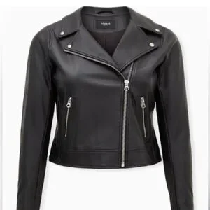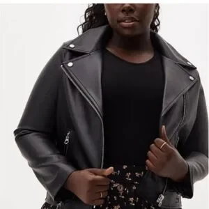 Chic black faux black leather cropped jacket with silver accents. Super soft and easy to wear.