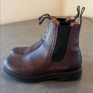 Sleek Shiraz dark brown leather. Elastic side panels. Durable and stylish. AU Size 5 1/2 US Women Size 8.5 wore them 2 times.