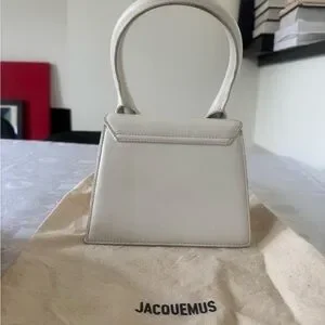Elegant mini bag by Jacquemus. Features a cream color with a gold logo accent. Perfect for adding a touch of sophistication.