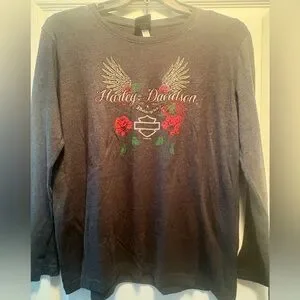 Harley-Davidson Women's Roses & Bling Long Sleeve Shirt, Vintage Black /Gray