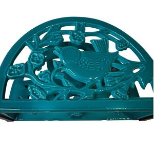 see pictures for condition and writing on bottom. Turquoise ceramic napkin holder adorned with a charming bird perched on a branch with berries. This decorative holder brings a touch of nature-inspired elegance to your kitchen or dining table. Ideal for everyday use or special gatherings.