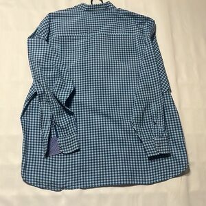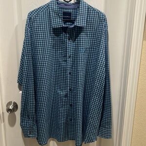 TOMMY BAHAMA PIMA COTTON BUTTON. , BLUE CHECK LONG SLEEVE SHIRT, MADE IN PERU, BIG AND TALL SIZE 2XB, PRE OWNED IN EXCELLENT CONDITION
