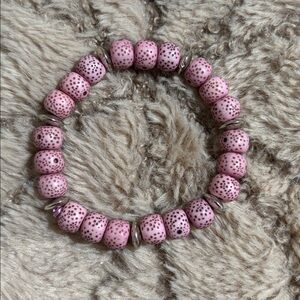 Chic speckled bead bracelet featuring pink, cream, and tan hues. Perfect for adding a touch of elegance to any outfit.