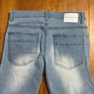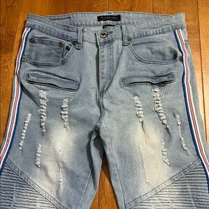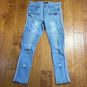 M. Society Moto Skinny Distressed Jeans Size 34 x 42 Men’s Trendy Light Wash
