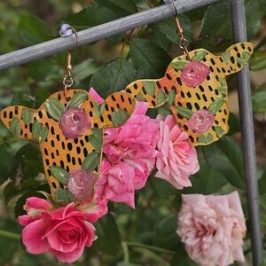 Hand-Crafted Handmade Earrings Boho Western Cow Floral Country Casual - E005