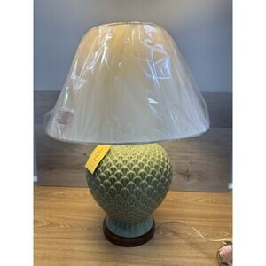 Ralph Lauren Green Pineapple Lamp 26” Shade Ceramic & Wood Base~New with Tag