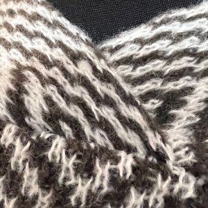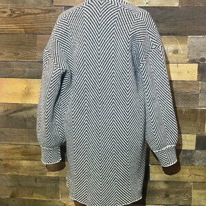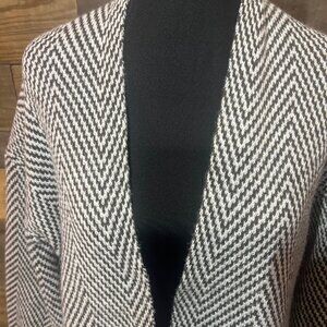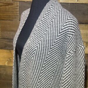 Emery Rose Long Open Cardigan Sweater Duster Dark Brown and White Chevron Pattern Medium