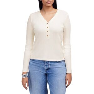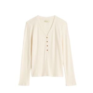 This brushed rib-knit long-sleeve tee combines an open V-neck with a button placket for a laid-back yet polished look.