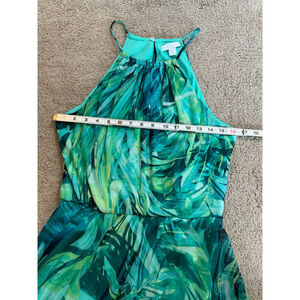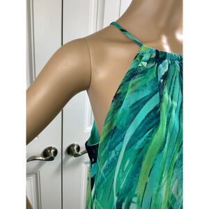 New York & Co. Woman's Halter Dress Size Med Green Blue Tropical Vacation Resort