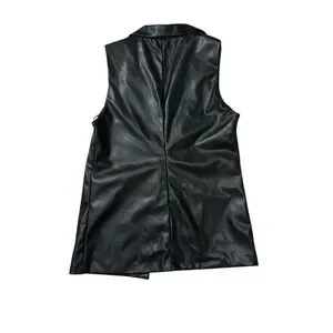 Chic black vest with a sleek design. Ideal for layering. Adds elegance to any look.
