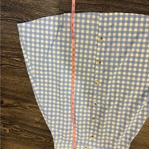 Chic and stylish blue and white gingham two-piece set perfect for any casual outing. Features a button-up top and matching skirt for a coordinated look.