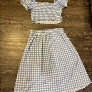 Blue and White Gingham Two-Piece Set