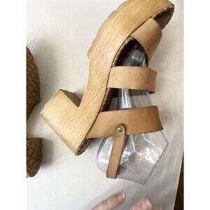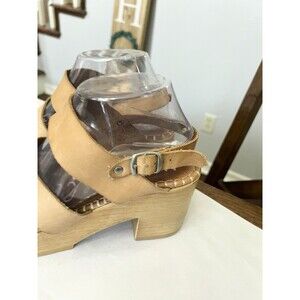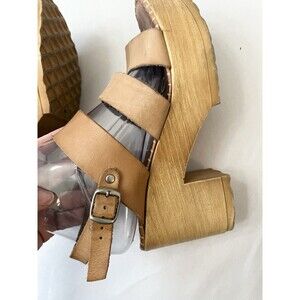 Musse & Cloud Fria Platform Leather Sandal Tan Brass Buckle Size 41 Size 10