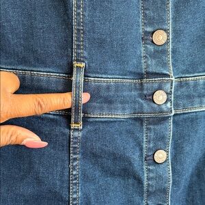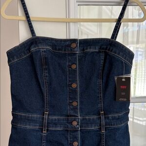 Stylish denim dress by Levi's. Versatile. Wear it strapless or use the adjustable straps. Features a button-down design. Ideal for everyday style or dress it up! SLIM fit. Denim stretches. Mint condition. Holiday Sale going on now!