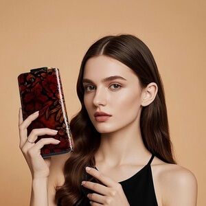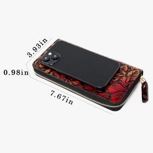 Elegant floral embossed wallet in striking red and black. Perfect for adding a touch of sophistication to any outfit. Patricia Nash vibes.
