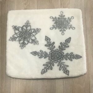 Faux fur jacquard pillow cover from Pottery Barn. Insert not included. Snowflakes. Ivory and gray. 18” x 18”. Good used condition. No stains or rips.