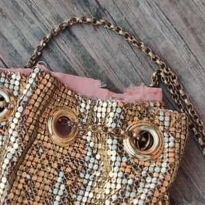 Vintage 1930s Whiting and Davis Flapper Gold Mesh Drawstring bag