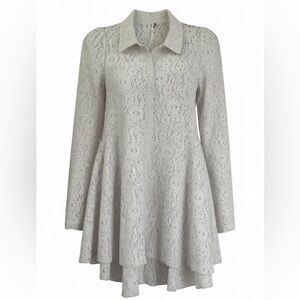 Free People Heather Lace Swing Hem Tunic | Boho Romantic Button Front Top Small