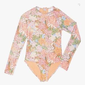 Roxy Girls Viva La Vida One Piece Rash Guard Bathing Suit, Peach Nectar, 7