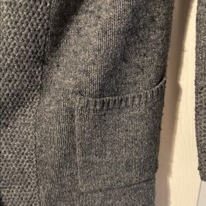 Stay cozy and stylish with this elegant gray knit coat. Perfect for layering, this coat offers both warmth and sophistication.