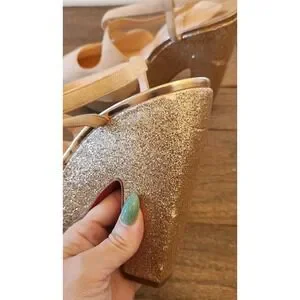 Christian Louboutin Size 39.5 Martel 140mm Glitter Suede Slingback Neutrals
