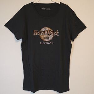 Hard Rock Cafe CLEVELAND Women's Black T-Shirt Rhinestone Logo Cotton Chest 42"