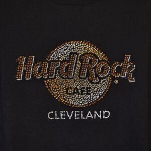 Hard Rock Cafe CLEVELAND Women's T-Shirt Closed Since 2016 Rhinestones Make Up Logo...