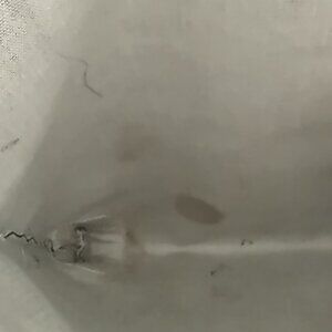 Small slightly cloudy areas on the front and back. The bag must be held at an angle against the light to see them. Very inconspicuous. Please see photos.
