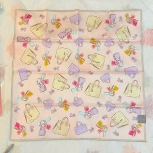 Stylish Celine scarf with a playful fashion print. Features handbags and accessories in vibrant colors. Perfect for adding a chic touch to any outfit.
