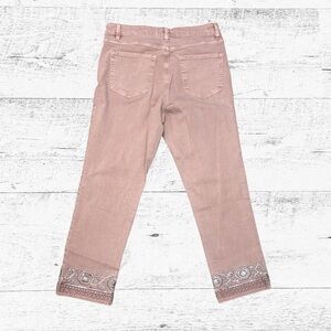 Elegant blush jeans with detailed embroidery. Ideal for a trendy look.