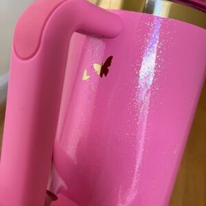 Gently used 2024 Stanley 40oz tumber, Wicked Glinda pink sparkle cup. Only used water in this cup. I have recycled the original straw and included 4 brand new wicked theme straws released in 2025.
