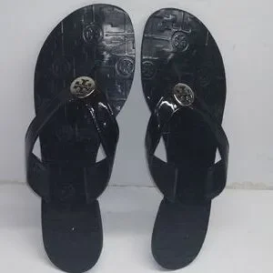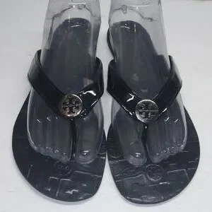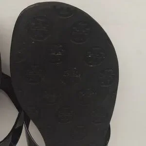 Stylish Tory Burch sandals. Sleek black design. Perfect for casual wear.