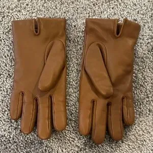 Coach Tan Leather Gloves with Gold Button Detail