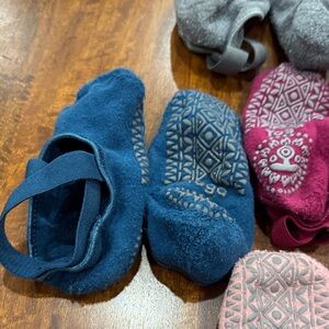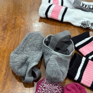 Collection of Wildfox and Yoga socks in various colors. Includes black, white, pink, gray, blue, and magenta socks. Perfect for casual wear or yoga sessions. All have been used. The yoga socks have wear as seen in picture but they still have a lot of use left! Price is reflective Smoke free and pet free home. Bundle and save great for yoga or Pilates
