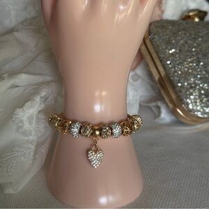 Stunning bracelet with gold and silver charms. Features a sparkling heart charm. Ideal for any occasion.