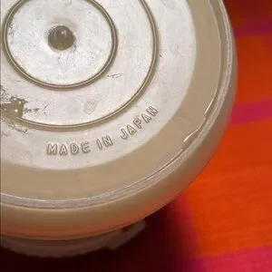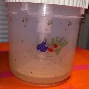 This originally was sold with pickles, and Made in Japan.The graphics have faded but this handy dandy pickle pot will be a fun addition for your kitchen!