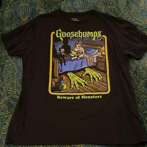 Embrace nostalgia with this Goosebumps black graphic tee. Perfect for casual outings, this short sleeve shirt features a vibrant design that stands out.
